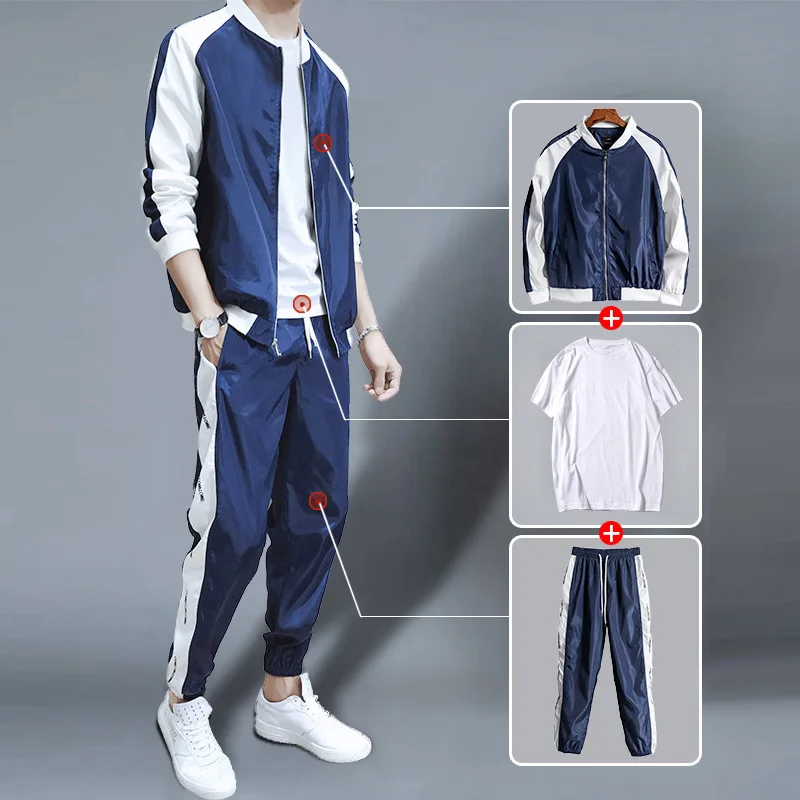 Zogaa 19 Sportivnye Kostyumy Muzhskie Nouveau Vetement Homme Casaco Ensemble Homme Coreen Decontracte Veste Costume 3 Pieces Ropa Hombre Decontracte Homme Baseball Vetements Manteau Pantalon T Shirt Blanc Ropa Hombre