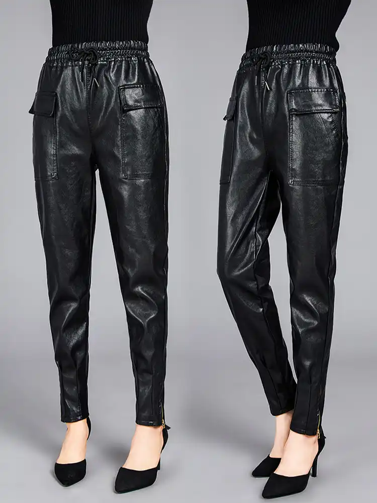 Automne Taille Haute Pantspu Pantalon En Cuir Sarouel Femme Pour Femmes Pantalon Ample Grande Taille Pantalon Faux Cuir Femme Pantalon Aliexpress