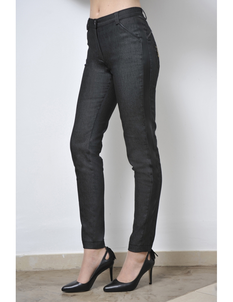 Pantalon Jean Femme Slim Noir Et Faux Cuir Barcelone Bleu D Azur