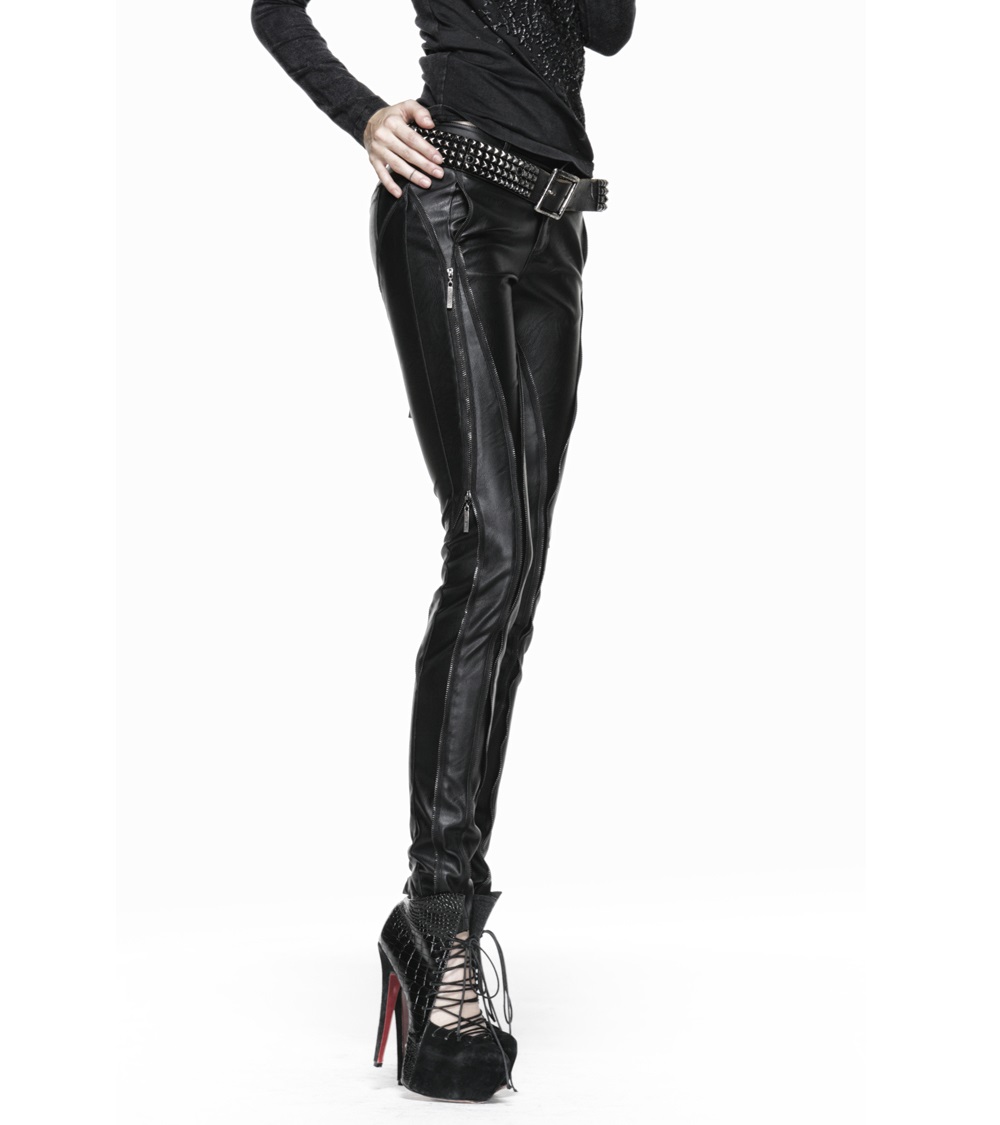 Pantalon Femme Imitation Cuir Noir Avec Zips Et Sangles Gothique Rock Punk Devil Fashion Devfa0155