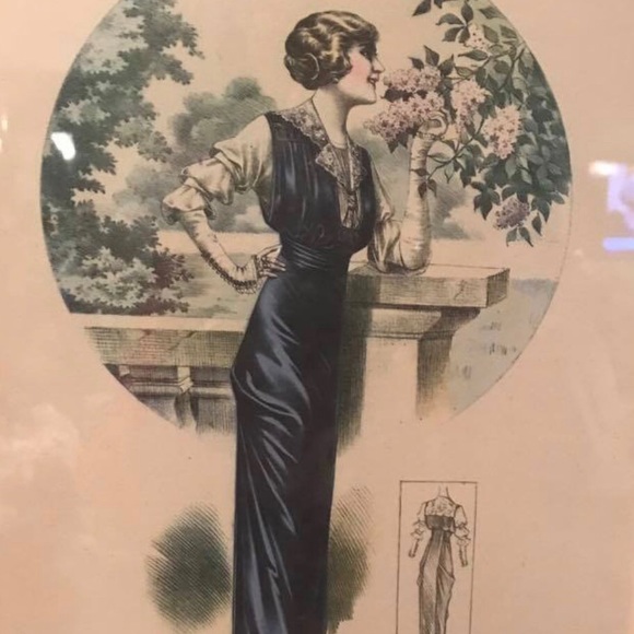 Antique French Belle Poque Fashion Print Hand Colored Tea Gown Laferriere