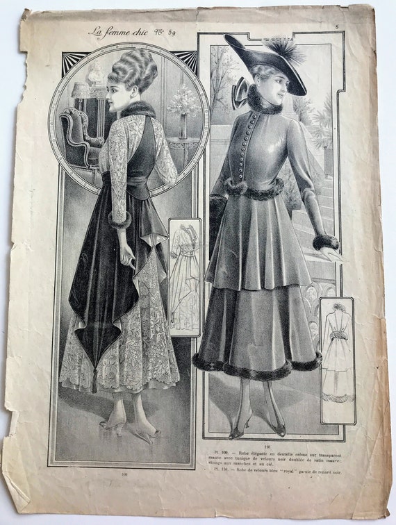 Two Sided Fashion Plate From French Magazine La Femme Chic Etsy