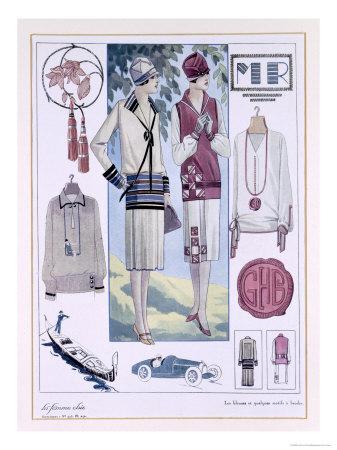 Five Different Blouses With Small Line Drawing Of The Back Side Further Accessories Necklace With Flower Corsage Hair Band Stoles And Tie Print Out The Fashion Magazine La Femme Chic 1911 1971 Manufacture