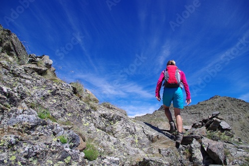 Jeune Femme Qui Grimpe T Marche En Montagne Avec Ciel Bleu Et Sac A Dos Buy This Stock Photo And Explore Similar Images At Adobe Stock Adobe Stock