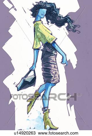 Vue Cote De Marche Femme A Elle Sac Dessin U Fotosearch