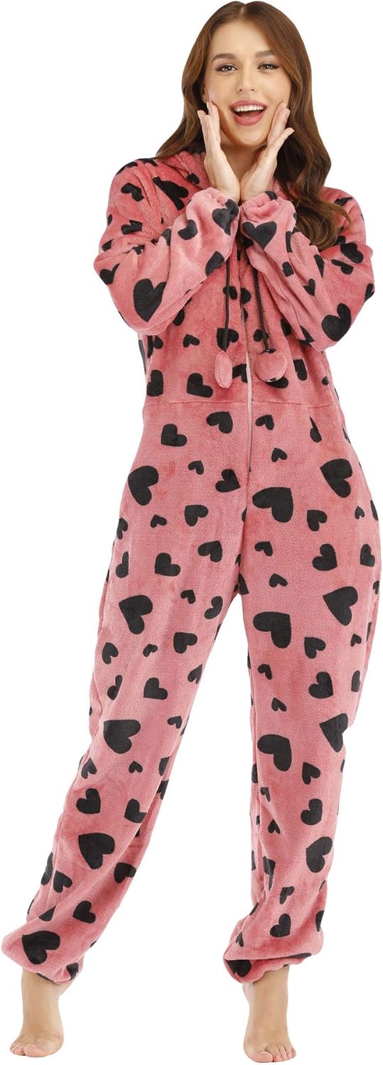 Berdith Combinaison Pyjama Polaire Femme A Capuche Grenouillere Adulte Grandes Tailles Chaud Onesies Automne Hiver Grenouilleres Vetements