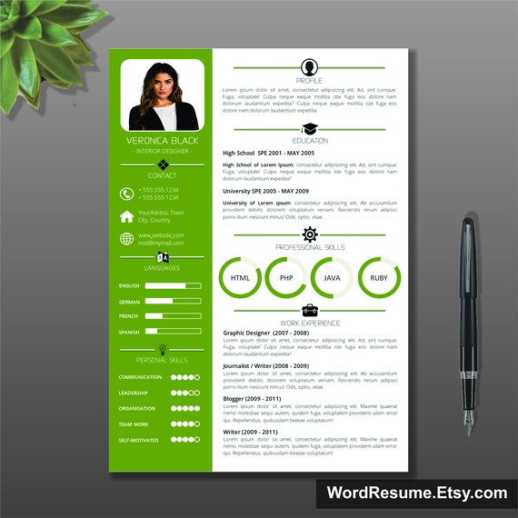 Resume Template With Photo Cover Letter Cv Template Word Etsy