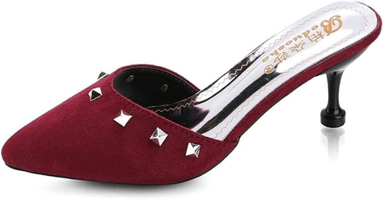 Sandales Talons Aiguilles Sexy Tongs Femmes Mules Et Sabots Mode Casual Bout Pointu Couleur Unie De Plein Air Rivet Pantoufles Chaussures A Talons Minces Noir Rose Jaune Vin Rouge Amazon Fr Chaussures Et