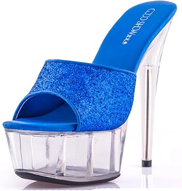 Sandale Sabot Mule Femme Talon Haut Aiguille 43cm Claquette Strass Paillette Semelle Transparent Soiree Mariage Bal Respirent Bleu 42 Amazon Fr Chaussures Et Sacs