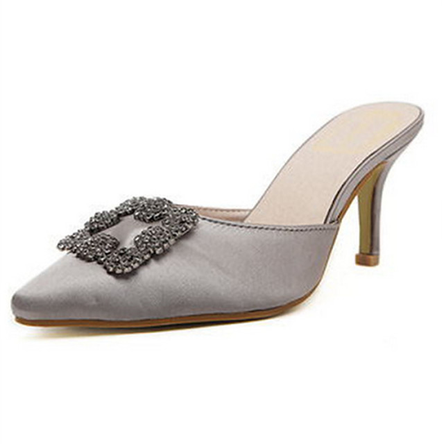 Chaussures Femme Decontracte Noir Gris Talon Aiguille Bout Pointu Sabots Mules Tissu De A 24 99