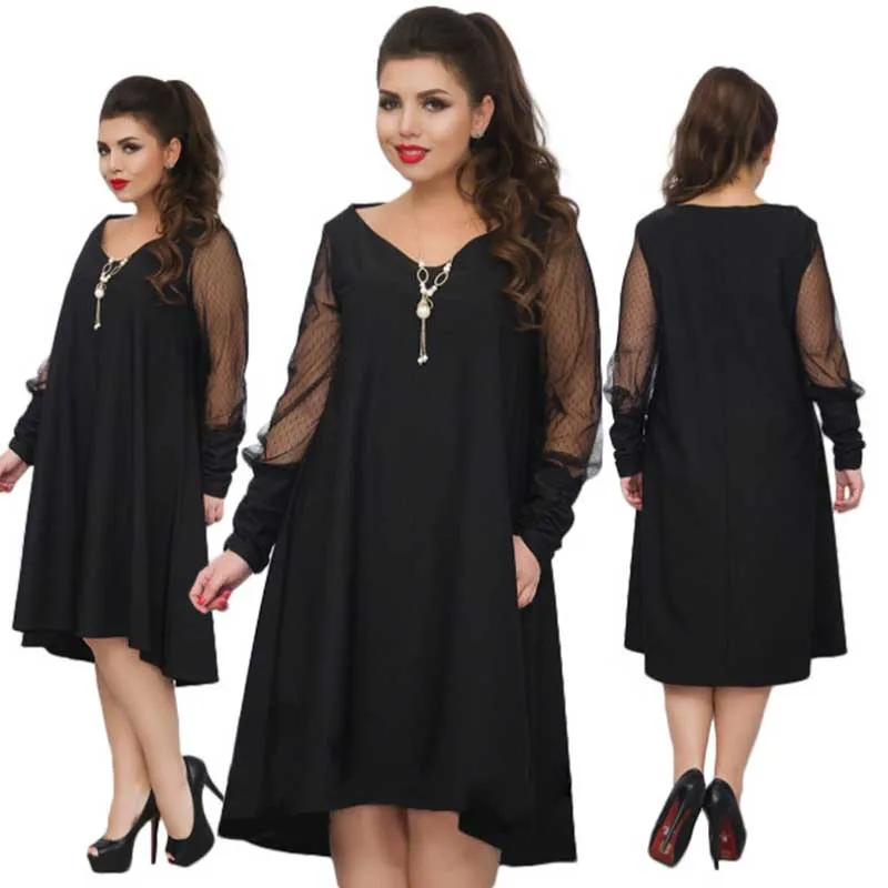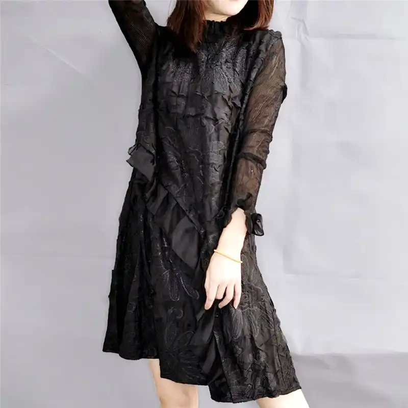 Grande Taille A Volants Robe Elegante Femmes Nouveau Lache Une Ligne Manches Longues Robes Plissees De Luxe Ol Vieillissement Robe Courte Vestidos Aliexpress