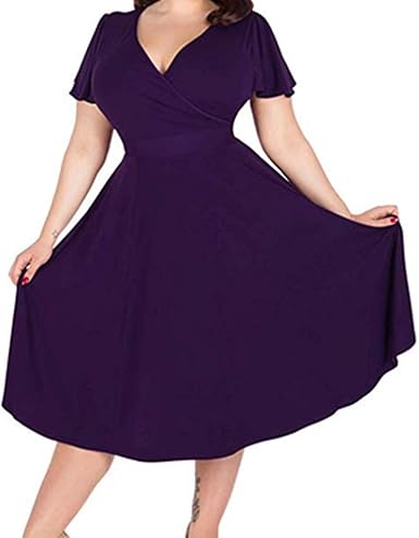 Overdose Soldes Robe Grande Taille Femme De Soiree Sexy Col V Chic Ete Slim Mi Longue Plissee Manches Courtes Robe Cocktail Taille L 5xl Amazon Fr Vetements Et Accessoires