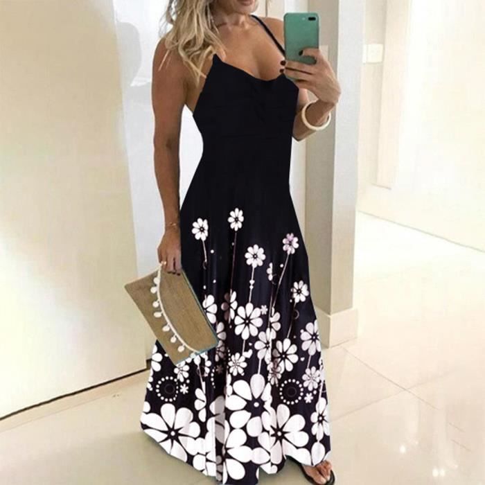 Grande Taille Femmes Elegantes Robe De Soiree Mode D Ete Robe Longue Avec Bretelles Noir Yuanliae Noir Achat Vente Robe Cdiscount