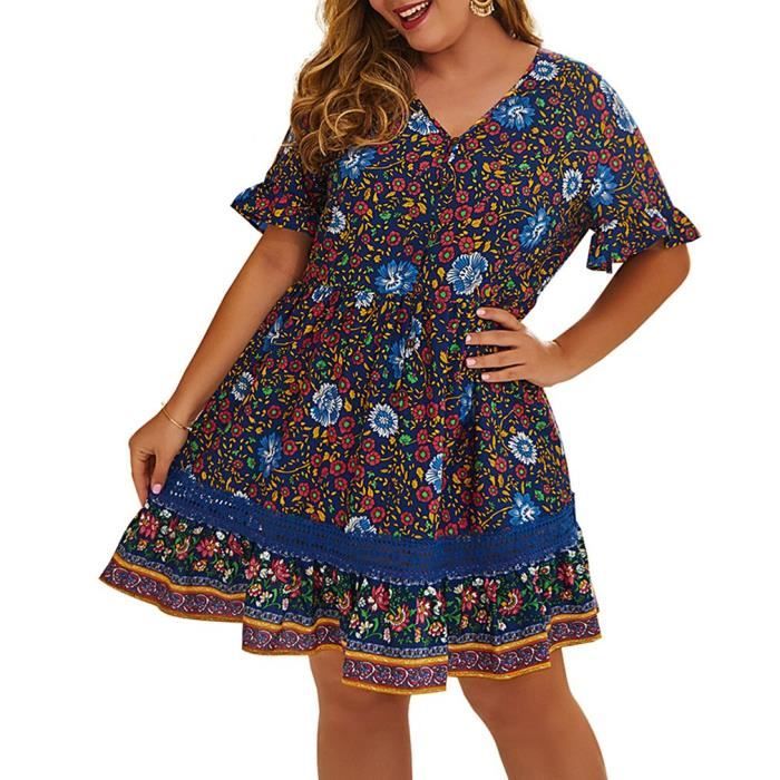 Elegante Robe Femme Col V Manche Courte Grande Taille A Fleur Buste 122cm Bleu Saphir Bleu Saphir Achat Vente Robe Cdiscount