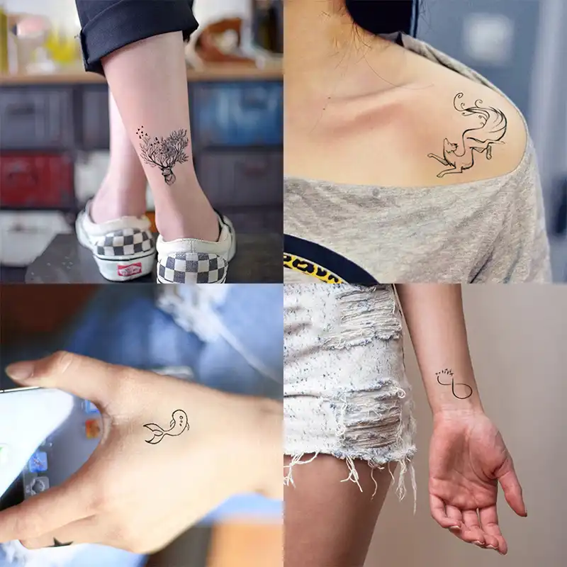 Ommgo Faux Tatouages Temporaires Pour Filles Autocollants Noirs Personnalises Style Nu Levres Art Corporel Minimaliste Bras Tendance Aliexpress