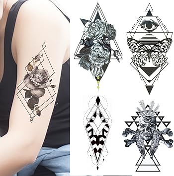 8 Tatouages Temporaires Geometrique Minimaliste Rose Triangle Tete De Mort Pour Homme Et Femme Tatouage Ephemere Avant Bras Jambe Molet Bras Nuque 15 X 21 Cm Amazon Fr Beaute Et Parfum
