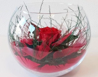 Rose Eternelle Rouge Xl Vase Boule Rose Eternelle Boule En Verre Rose Stabilisee