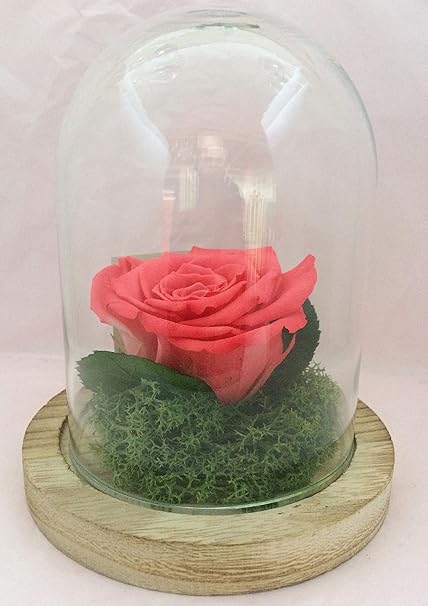 Rose Eternelle Bois De Rose Sous Cloche Globe Rose Et Feuilles De Rose Stabilisees Mousse Vegetale Stabilisee Amazon Fr Cuisine Maison
