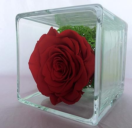 Cube Avec Rose Stabilisee Couleur Rouge 8 Cm Made In Italy Veritable Rose Qui Dure 5 Ans Egalement Connue Sous Le Nom De Rose Eternelle Ne Necessite Ni Eau Ni Lumiere Amazon Fr