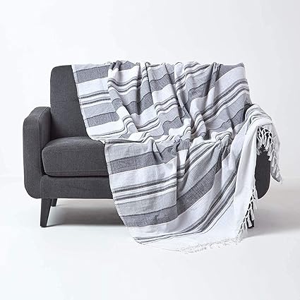 Homescapes Jete De Lit Jete De Canape Gris Et Blanc A Rayures De 150 X 0 Cm En Pur Coton Appartenant A La Collection Stripes Amazon Fr Cuisine Maison