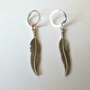 Boucles D Oreilles Anneaux Homme Femme C Argent Pendentif Grosse Plume 25 Ebay