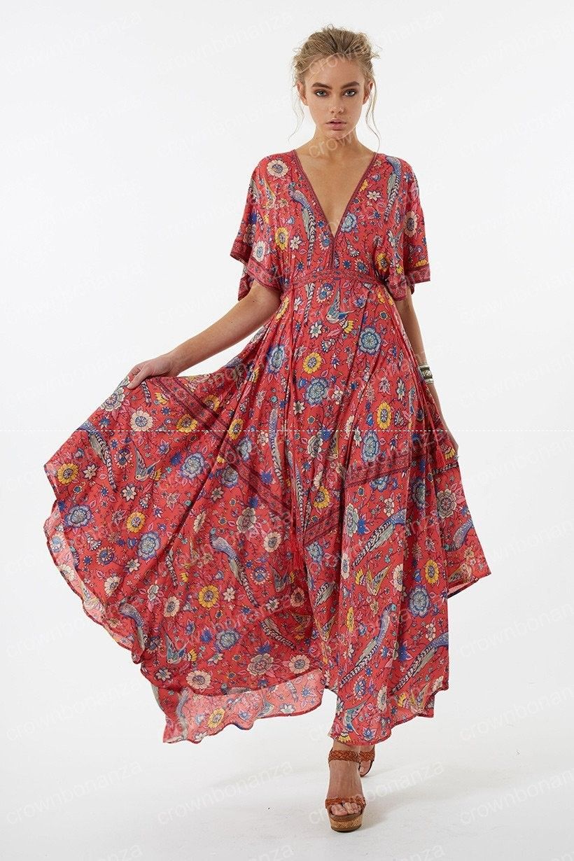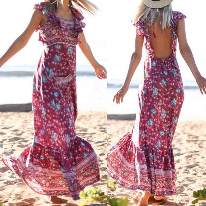 Robe Longue Boheme Summer Vintage Boho Imprime Long Maxi Beach Dress Robe D Ete Ebay