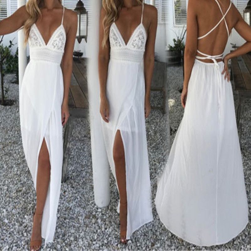 Acheter 18 Ete Boho Femmes Robe Longue Dos Nu Halter Col En V Maxi Plage Boheme Robes Robe Blanche T Shirt Col Robe Sans Manches De 16 93 Du Watch13 Dhgate Com