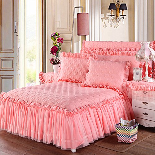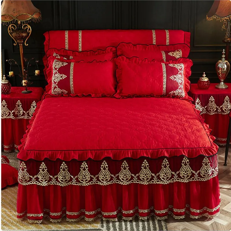 Plus Epais Chaud Matelasse Mariage Couvre Lit Drap Housse Taies D Oreiller Solide Coton Princesse Dentelle Literie Lit Jupe King Queen Size Aliexpress