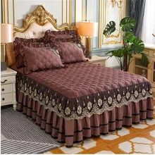 Couvre Lit Jupe En Velours Cristal 3 Pieces Couvre Lit En Coton Epais Antiderapant Style Europeen Livraison Gratuite Aliexpress