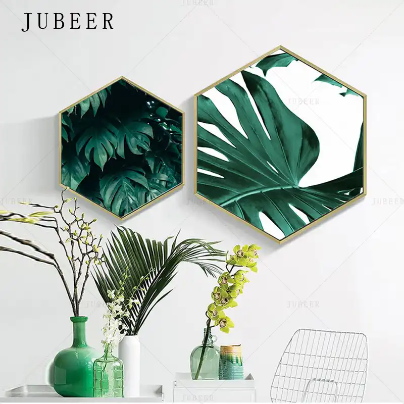 Toile Avec Plante Verte Hexagonale De Style Nordique Tableau Mural En Hd Avec Feuilles Tableau D Art Mural Pour Decoration De Maison Aliexpress