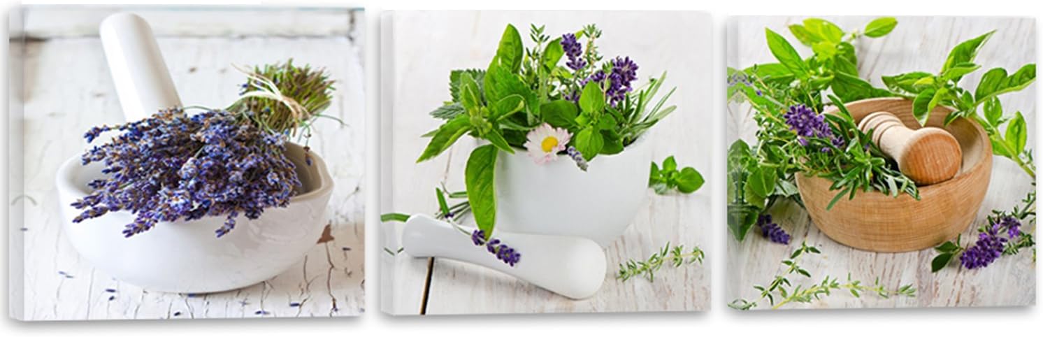 Feeby Frames Cuisine Image Imprimee Tableau Multi Panneaux 3 Parties 1x40 Cm Plantes Decoration Murale Vert Fines Herbes Impression Sur Toile Rustique Panoramique Decoration De La Maison Cuisine Maison