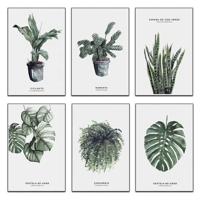 Lot De 6 Pieces Peinture En Toile Sans Cadre Plante Verte Poster Decoration Murale Ornement Pour Maison Bureau Cafe Achat Vente Tableau Toile Soldes Sur Cdiscount Des Le Janvier Cdiscount