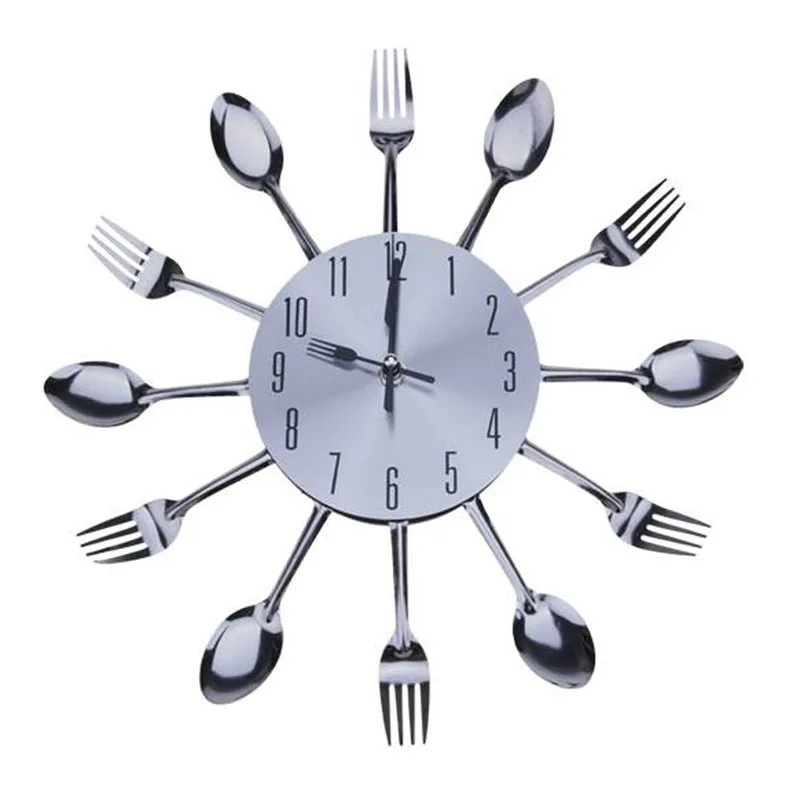 Horloge Murale Fourchette Cuillere Cuisine Nouvelle Cuisine Noire Design Moderne Couverts En Argent Ustensile De Cuisine Horloge Murale Cuillere Horloge Fs28 Aliexpress