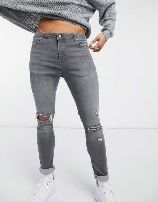 Evesham Nj Design Jean Seconde Peau En Tissu Power Stretch Avec Dechirures Aux Genoux Noir Delave Evesham Nj