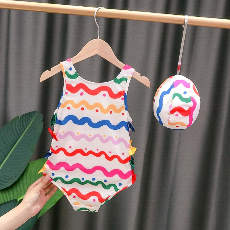 New Kids Siamese Swimsuit Bowknot Baby Cute Striped Korean With Free Swimming Cap Maio Infantil Maillot De Bain Fille Children One Piece Suits Aliexpress