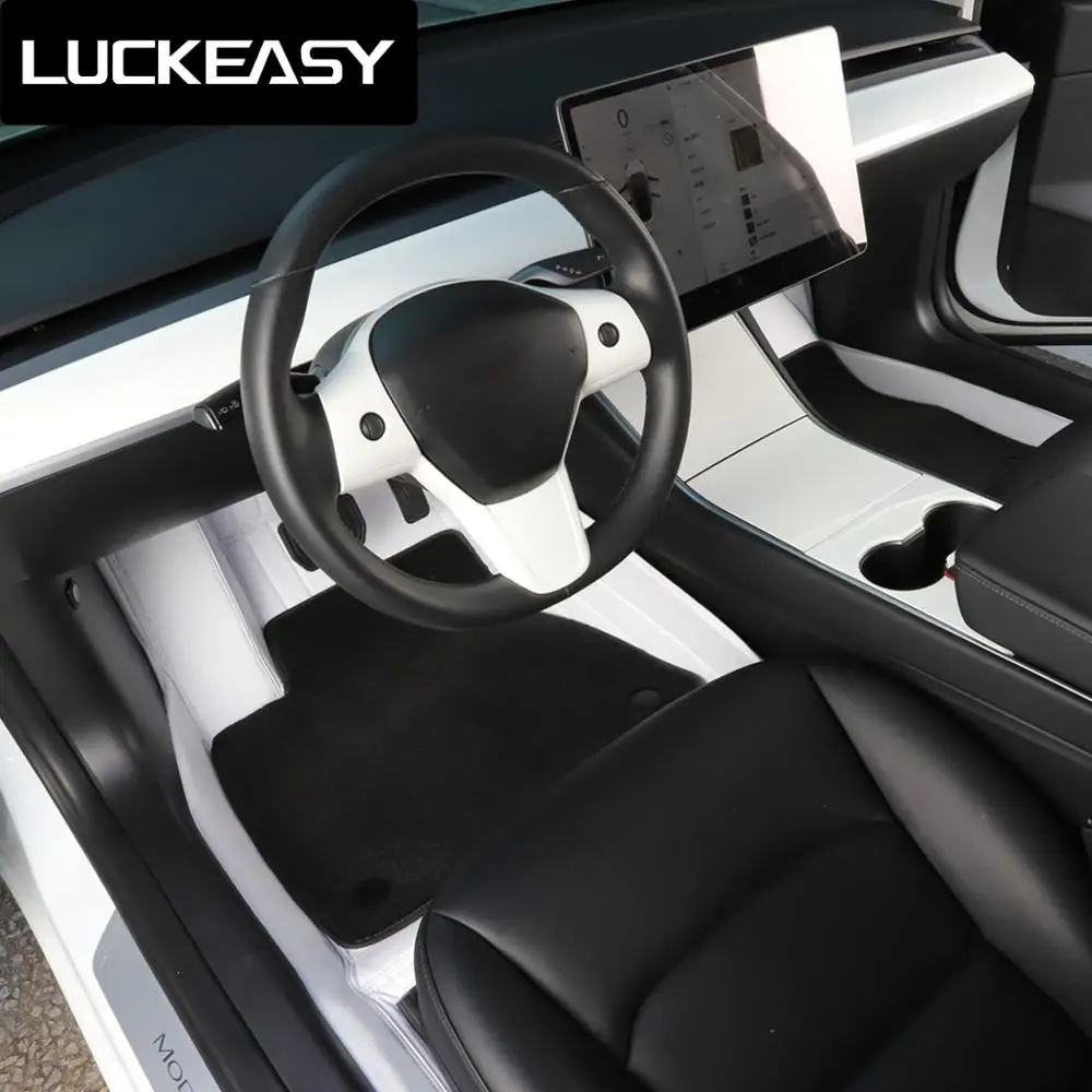 Luckeasy For Tesla Model 3 17 Car Microfiber Leather Floor Mats White Car Accessories Interior 3pcs Set Floor Mats Aliexpress