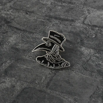 Peste Docteur Masque Doux Email Broche Badge Noir Oiseau Tete Masque Broche Bizarre Punk Gothique Broches Pour Femmes Hommes Medecin Epinglette Leather Bag