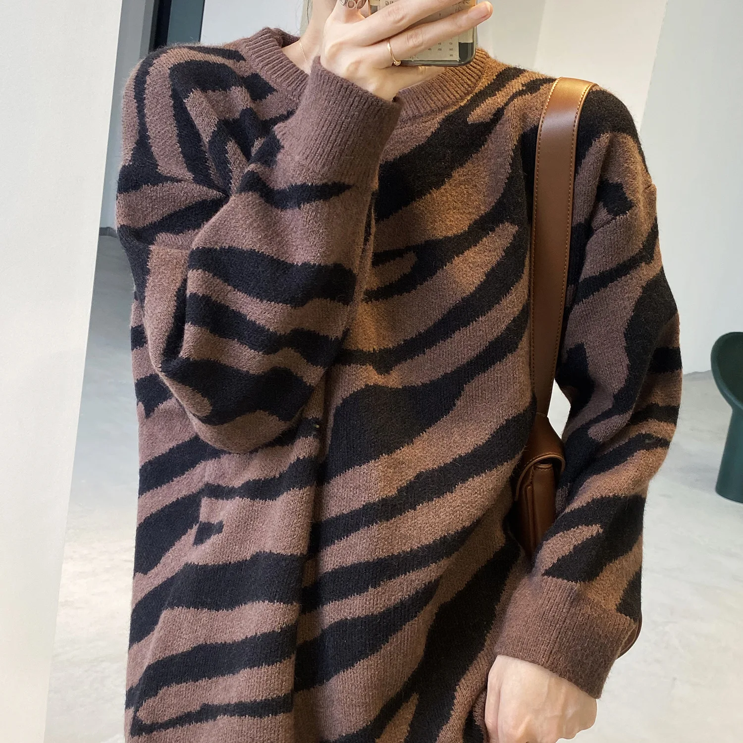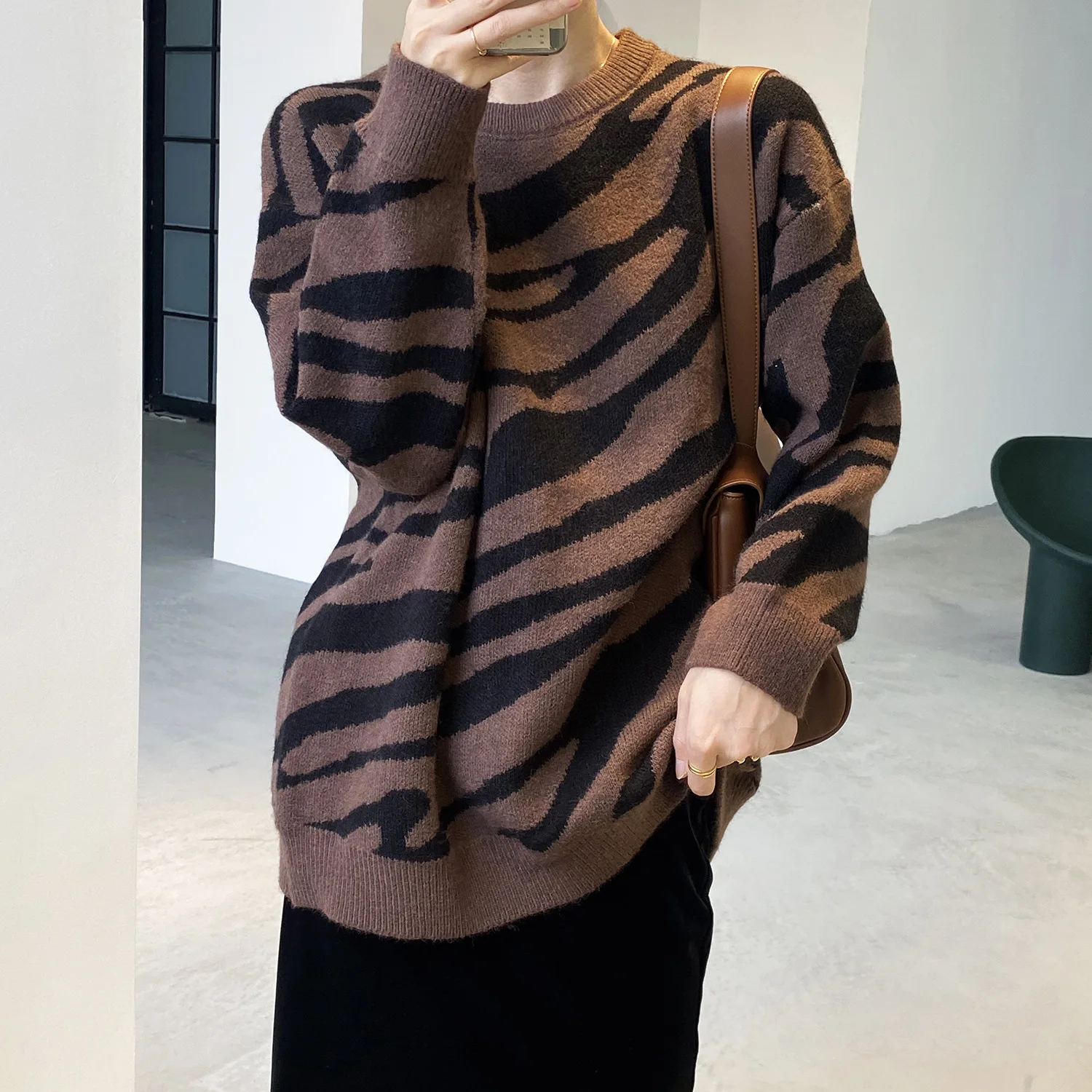 Pull Imprime Leopard Femmes Pulls D Hiver Surdimensionne Pull Large Coreen Decontracte Doux Manche Longue Tricots Vetements Tricotes Kiosque Ma