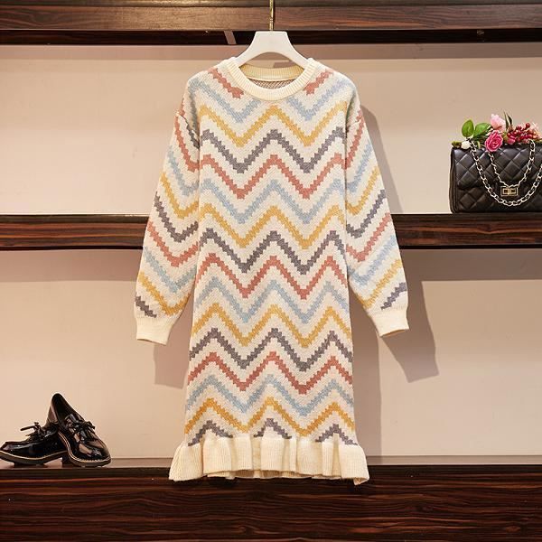 Pull D Hiver Femmes Rayures Femmes Robe Hiver Mode Rayures Volants Tricot Pull Robes Mi Longues Preppy Style Ample Grande Tail Beige Achat Vente Robe Cdiscount
