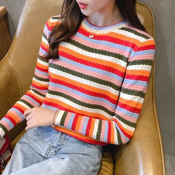 Pull D Hiver Femmes Rayures Nouveau Femmes Hiver Automne Kawaii Ulzzang Col Rond Arc En Ciel Rayures Tricote Pull Femme Haraju Cai Hong Achat Vente Pull Soldes Sur Cdiscount Des Le Janvier