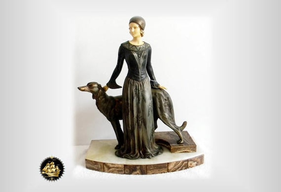 Menneville Et Rochard Large Metal Art Deco Figurine Circa Etsy