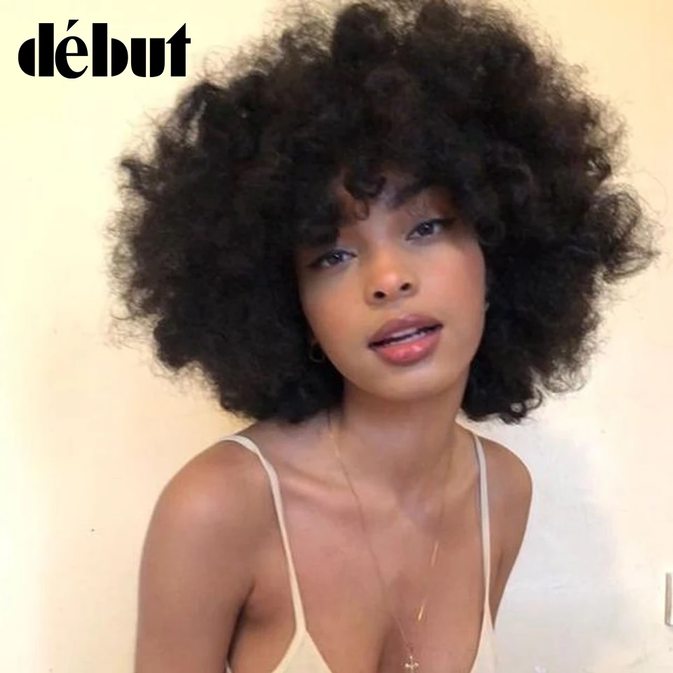 Deyngs Perruque Synthetique Courte Afro Bouclee Et Crepue Blonde Ombre Perruque Naturelle Afro Avec Franges Pour Femmes Noires Fete Cosplay Aliexpress