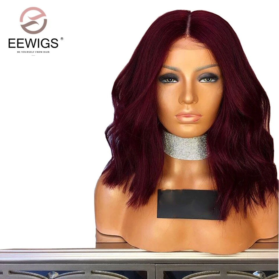 Eewig Perruque Lace Front Wig Bordeaux Avec Naissance De Cheveux Naturelle Perruque Courte Synthetique Resistante A La Chaleur Densite 180 Pour Femmes Noires Aliexpress