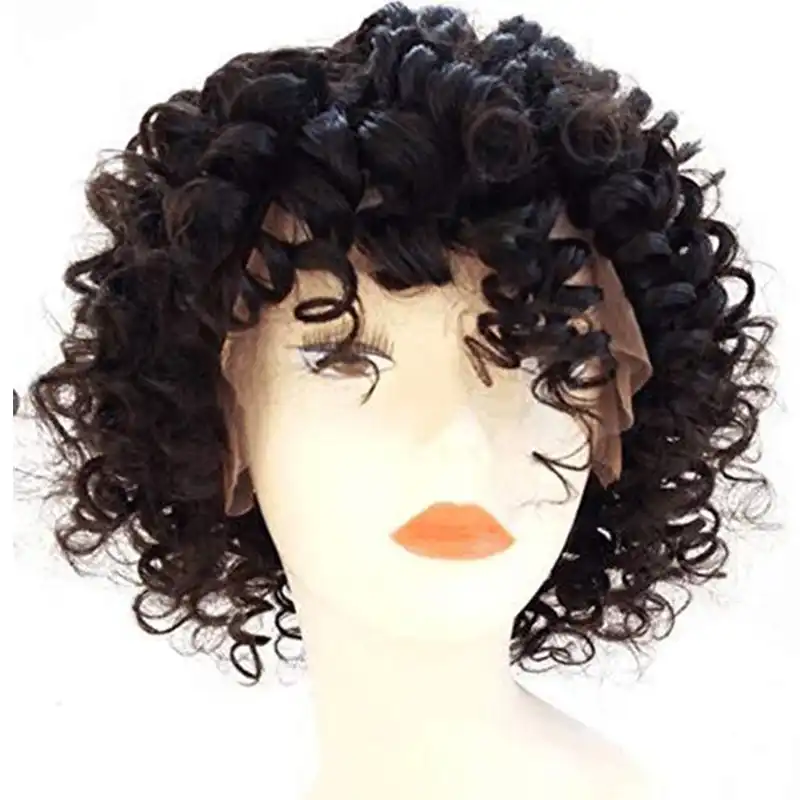 Perruque Courte Cheveux Boucles Naturels Noirs Extension Perruque