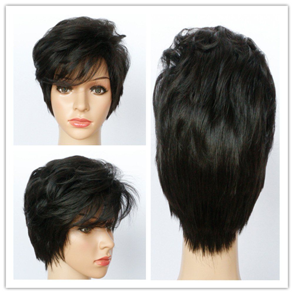 Creamily Perruque De Cheveux Humains Naturelle Droite Courte Noire Avec Frange Pixie Cut Party Wig Utilisation Quotidienne Pour Les Femmes Amazon Fr Beaute Et Parfum
