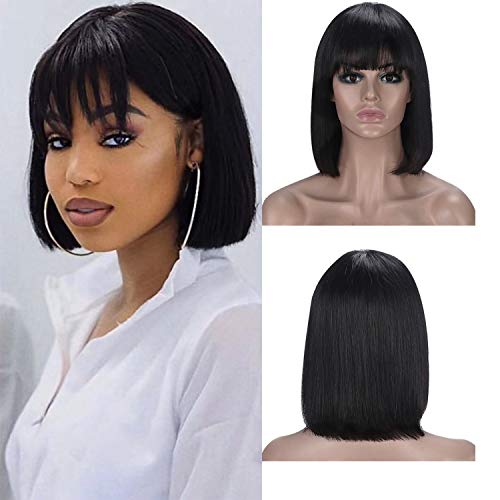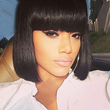 Morichy Perruque De Cheveux Humains Pour Femme Noire Perruque Courte Bresilienne Raides Avec Frange Cheveux Remy Couleur Naturelle Amazon Fr Beaute Et Parfum