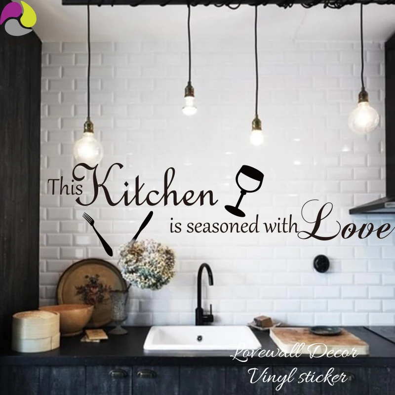 Cette Cuisine Est Assaisonnee Avec Amour Citation Murale Autocollant Mural En Vinyle Decalque De Cuisine Pour La Salle A Manger Aliexpress