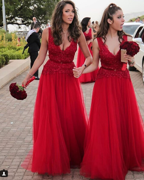 Robe De Soiree Rouge Moulante Longue Pour Demoiselle D Honneur Avec Mariee En Robe Robe De Mariee Princesse Robe Demoiselle Honneur Rouge Demoiselle D Honneur