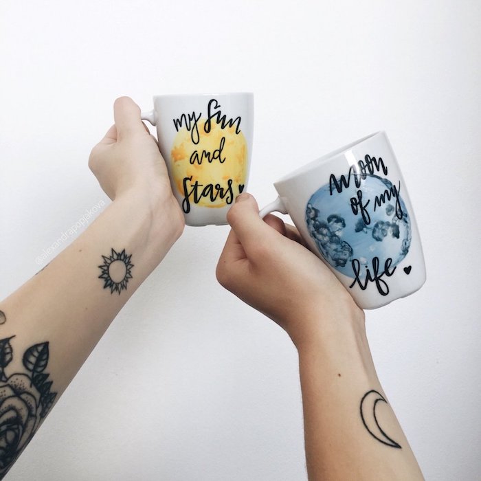 Tatouage Couple Discret Symboles Soleil Lune Sans Ombrages Tatouage Discret Tatouage Couple Tatouage
