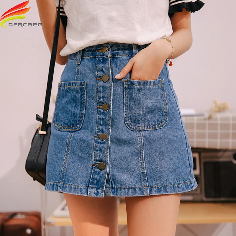 Jupe Jean Taille Haute Pour Femmes Mini Jupe Ligne A Avec Poches A Boutons Uniques Bleue Nouvelle Collection Ete Aliexpress